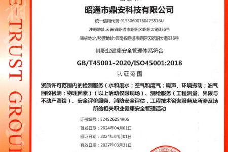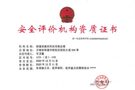 2003年11月10日,昭通市鼎安科技有限公司成立,初始主要從事第三方安全工程技術服務,經多年運營,發(fā)展為多專業綜合科技平臺,為社會提供多種專業技術服務工作。 現公司注冊資金為1200萬元,公司法定代表人:毛衛旭。公司主要業務:安全評價、安全標準化評審、安全工程技術服務;環(huán)境監(jiān)測、職業衛生檢測、檢驗;法律訴訟及非訴訟服務;司法鑒定、固定資產投資項目節(jié)能服務;工程咨詢;工程測量測繪;安全教育培訓等。是安全生產服務、安全教育培訓機構,也是環(huán)境監(jiān)測和職業衛生服務機構,同時也是綜合的檢測檢驗、綜合科技平臺服務機構。多年來為公、檢、法、司、軍、警、海關、仲裁、安監(jiān)、工礦商貿企業、社會團體及個人提供多專業技術服務。
